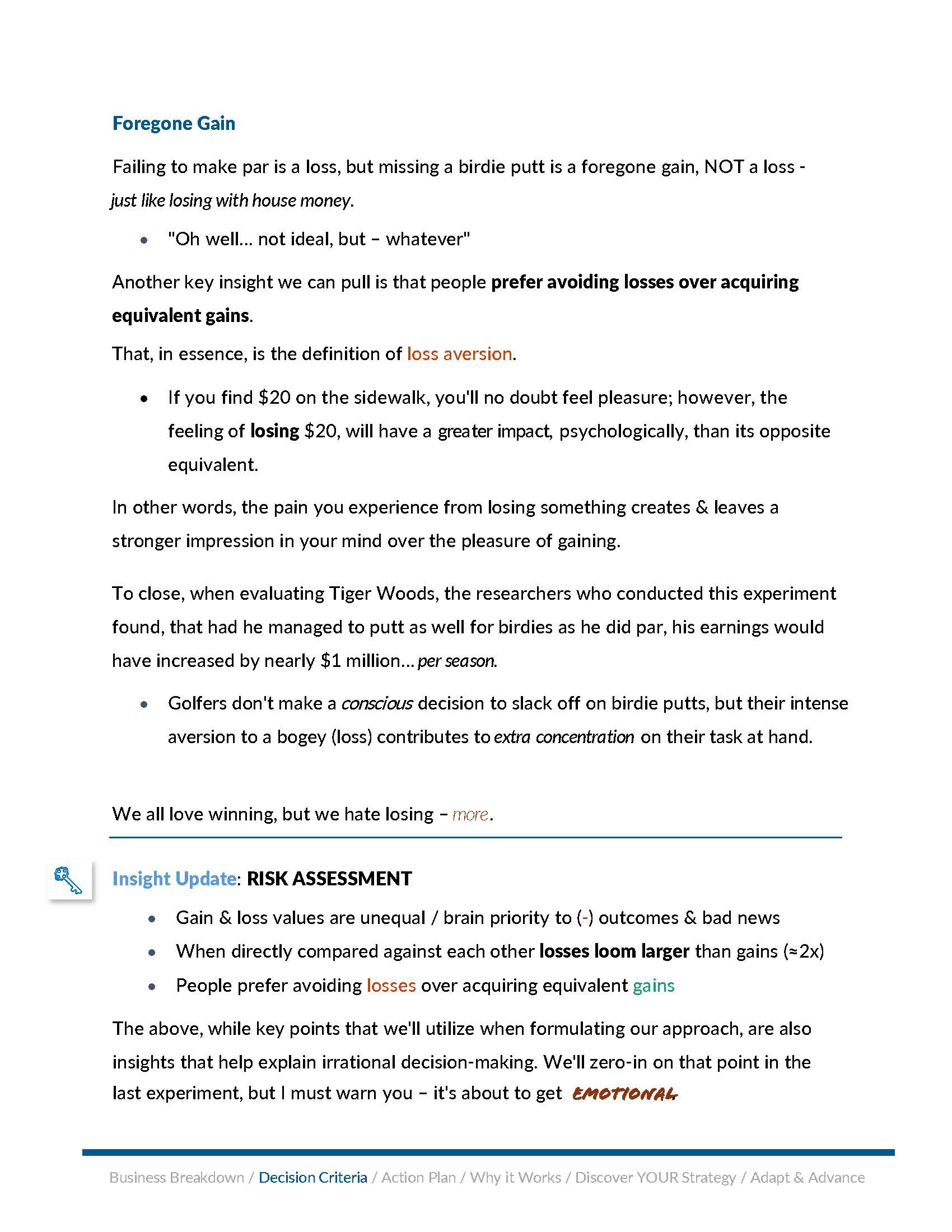 The MORAL: Gains v Losses